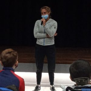 Une première rencontre a eu lieu dans l’enceinte de l’EREA. A la Rotonde tout d’abord, pour un beau témoignage et pour qu’elle réponde aux questions des élèves. Ensuite, direction le gymnase pour une petite démonstration de tennis fauteuil avec son entraineur et enfin nous avons mis en place des ateliers de tennis adaptés. Tous les élèves ont participé et ont passé un petit moment avec Pauline. La matinée s’est terminée par des autographes !!!