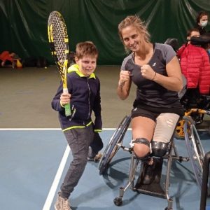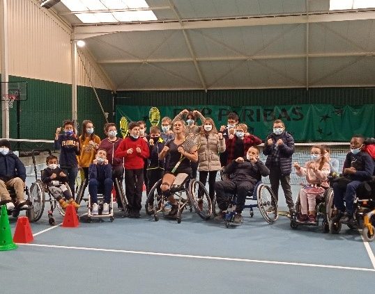 Afin qu’il y ait une continuité dans le projet, nous avons accepté et amené deux classes de 6èmes supporter Pauline ; les élèves ont pu à nouveau profiter d’ateliers de tennis adaptés !