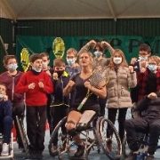 Eloïse (3e4), qui s’entraine depuis des semaines à réaliser des graphismes, a eu le privilège de s’essayer sur la grande fresque sous l’œil bienveillant de l’artiste. La semaine prochaine ce sera Hamed (3e3) !